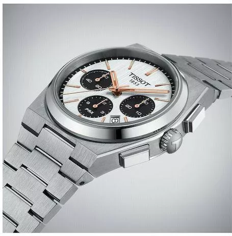 Ανδρικό Ρολόι Tissot PRX Χρονογράφος Αυτόματο με Ασημί Μεταλλικό Μπρασελέ