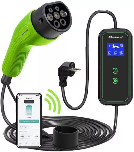 Σταθμός Φόρτισης Ηλεκτρικών Αυτοκινήτων Qoltec Φορητός Μονοφασικός 3.5kW με Ενσωματωμένο Καλώδιο Type 2 52476