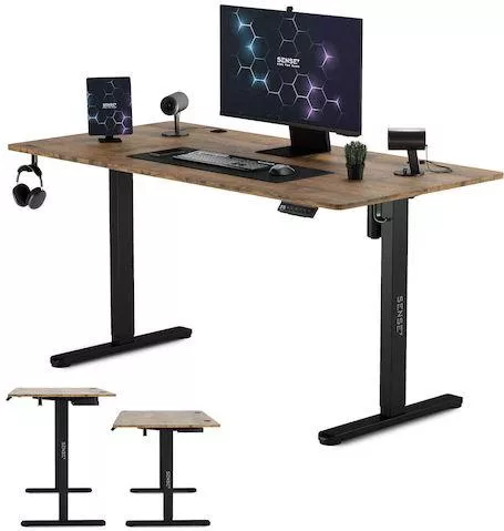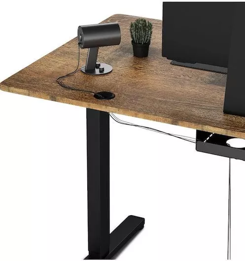 Γραφείο Ηλεκτρικό Ξύλινο Wenge Μαύρο Δρυ με Μεταλλικά Πόδια & Ρυθμιζόμενο Ύψος 140x70cm