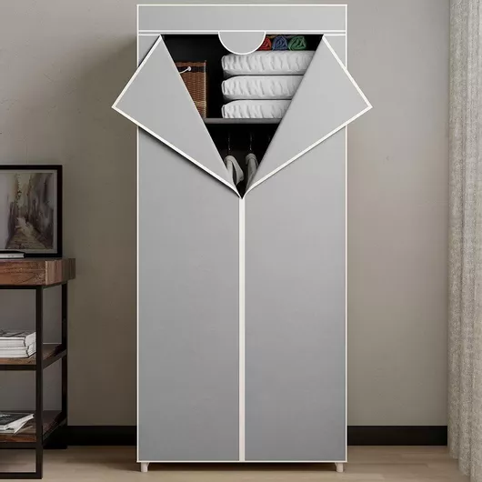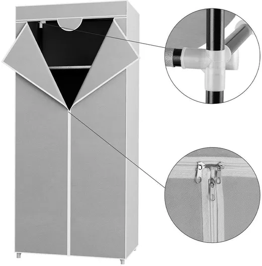 Bakaji Υφασμάτινη Ντουλάπα με Φερμουάρ και Ράφια σε Γκρι Χρώμα 70x46x160cm 02838698