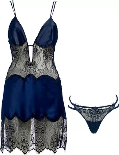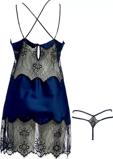 Luna Σατέν Γυναικείο Νυχτικό με String Navy Blue Cabaret