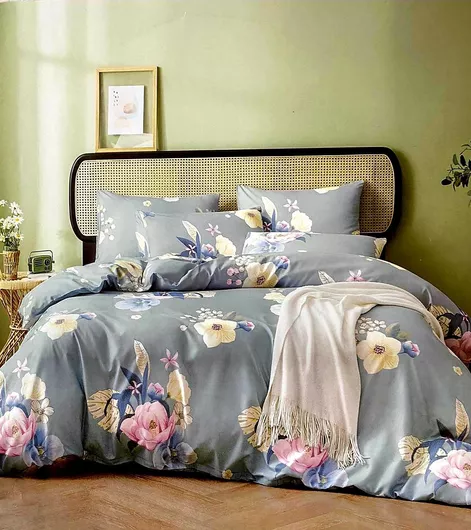 Σετ Σεντόνια D712 Βαμβακερά & Πολυεστέρας με Λάστιχο & Παπλωματοθήκη Υπέρδιπλο 210x230+30cm Floral 5τμχ Γκρι