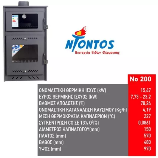 Διάμετρος Καμινάδας:150 mm