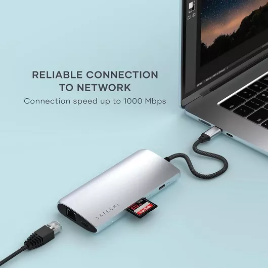Docking Station Laptop Satechi USB-C με HDMI 4K PD Ethernet Ασημί ST-P8KES