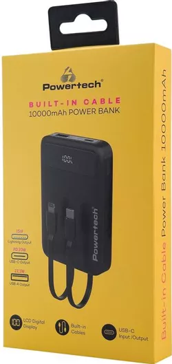 Powertech Power Bank 10000mAh 22.5W με Θύρα USB-A & Θύρα USB-C Power Delivery/Quick Charge 3.0 Μαύρο