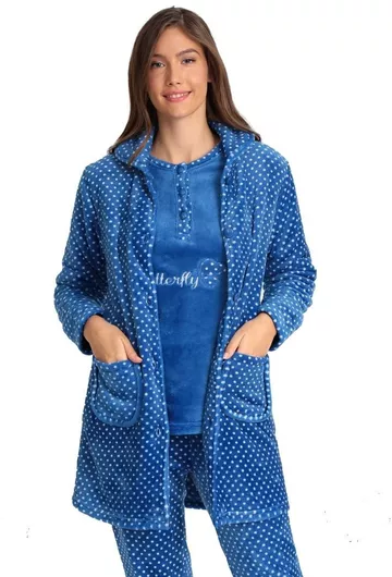 Lydia Creations Χειμερινή Γυναικεία Fleece Ρόμπα Μπλε