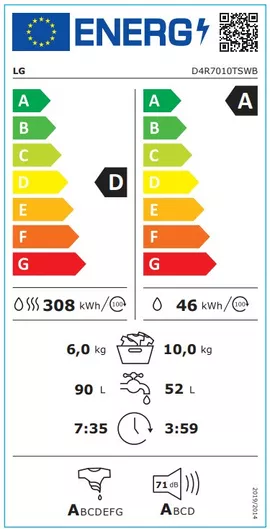 Πλυντήριο / Στεγνωτήριο Ρούχων LG D4R7010TSWB 10kg / 6kg Ατμού 1400 Στροφές με Wi-Fi