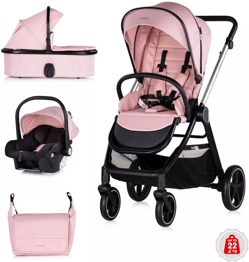 Καρότσι Μωρού Chipolino Marbella Ρυθμιζόμενο 3 σε 1 Kατάλληλο για Nεογέννητο Marshmallow