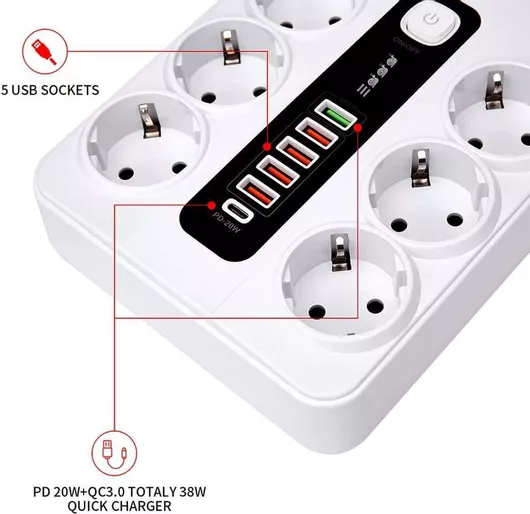 Πολύπριζο Ασφαλείας 6 Θέσεων με USB-A USB-C & Διακόπτη