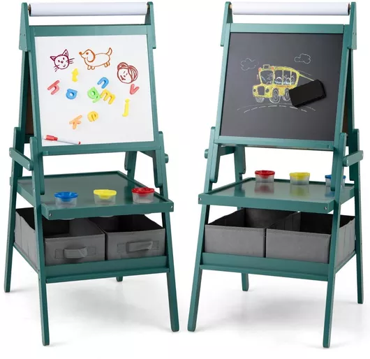 Costway Πίνακας Μαγνητικός / Μαυροπίνακας Διπλής Όψης Επιδαπέδιος 38x38x101.5cm