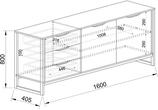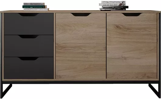 Μπουφές Arwen από Μέταλλο με Συρτάρια Arwen Oak- Graphite, Μαύρος 160.5x40.5x80cm