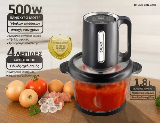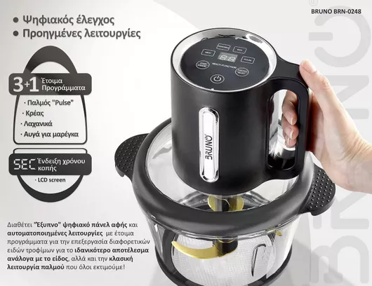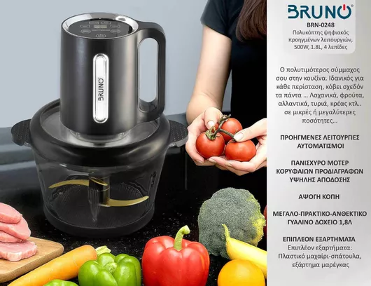 Bruno BRN-0248 Πολυκόπτης Ψηφιακός 500W 1.8L με 4 Λεπίδες Μαύρο