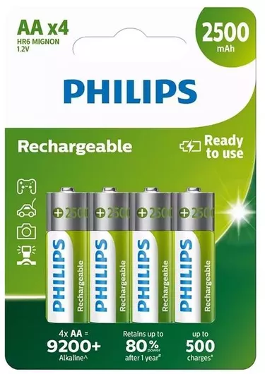 Philips Επαναφορτιζόμενες Μπαταρίες AA Ni-MH 2500mAh 1.2V 4τμχ