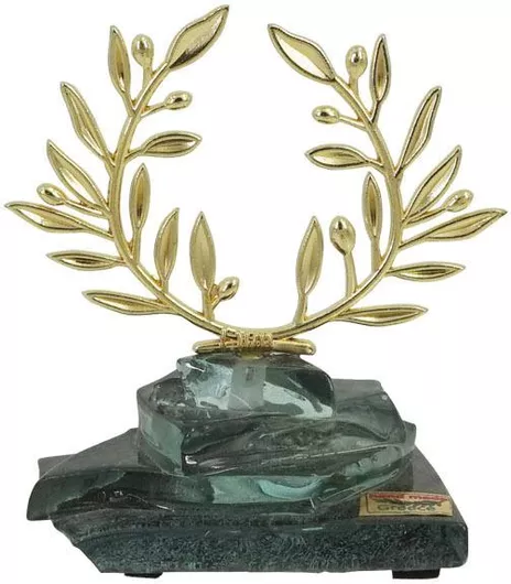 Marhome Διακοσμητικο Γυαλινο Φουτζι Μαυρο Στεφανι Ελιας Μεταλλικο Χρυσο 12x10.5cm S1417