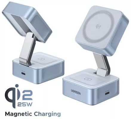 Ugreen Ασύρματος Φορτιστής W752 Qi2 GaN με Θύρα USB-C και Καλώδιο USB-C 25W Γκρι
