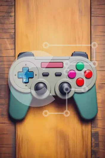 Intra Συλλεκτικό Ξύλινο Παζλ Plywood 4mm - Ρετρό χειριστήριο βιντεοπαιχνιδιών σε ξύλινη επιφάνεια Σε Ξύλινο Κουτί - Διαστάσεις Puzzle: 10x10 cm – 25 κομμάτια