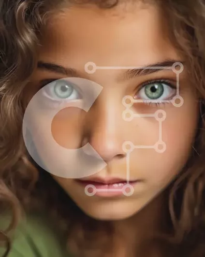 Intra Συλλεκτικό Ξύλινο Παζλ Plywood 4mm - Σοβαρό πορτρέτο ενός νεαρού κοριτσιού με σγουρά καστανά μαλλιά και πράσινα μάτια Σε Ξύλινο Κουτί - Διαστάσεις Puzzle: 10x10 cm – 25 κομμάτια