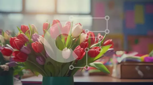 Intra Συλλεκτικό Ξύλινο Παζλ Plywood 4mm - Πολύχρωμες τουλίπες σε πράσινο βάζο με βιβλία Σε Ξύλινο Κουτί - Διαστάσεις Puzzle: 10x10 cm – 25 κομμάτια