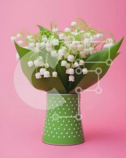 Intra Συλλεκτικό Ξύλινο Παζλ Plywood 4mm - Λευκό κρίνο της κοιλάδας λουλούδια σε πράσινο βάζο σε ροζ φόντο Σε Ξύλινο Κουτί - Διαστάσεις Puzzle: 10x10 cm – 25 κομμάτια