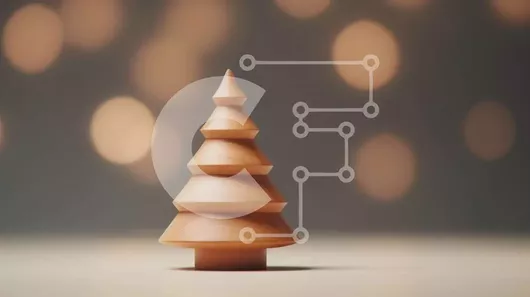 Intra Συλλεκτικό Ξύλινο Παζλ Plywood 4mm - Μικρό ξύλινο χριστουγεννιάτικο δέντρο με φώτα Bokeh σε πορτοκαλί φόντο Σε Ξύλινο Κουτί - Διαστάσεις: 10x10 cm – 25 κομμάτια