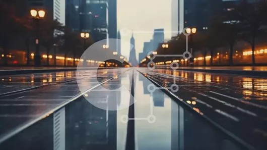 Intra Συλλεκτικό Ξύλινο Παζλ Plywood 4mm - Οδός της πόλης τη νύχτα με ψηλά κτίρια και υγρό πεζοδρόμιο Σε Ξύλινο Κουτί - Διαστάσεις Puzzle: 10x10 cm – 25 κομμάτια