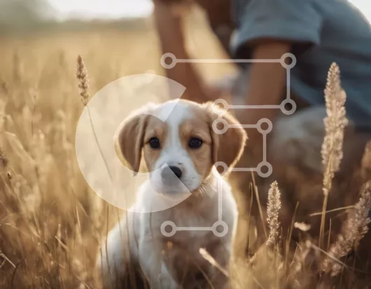 Intra Συλλεκτικό Ξύλινο Παζλ Plywood 4mm - Χαριτωμένο κουτάβι που κάθεται σε ένα χωράφι με ψηλό γρασίδι Σε Ξύλινο Κουτί - Διαστάσεις: 10x10 cm – 25 κομμάτια