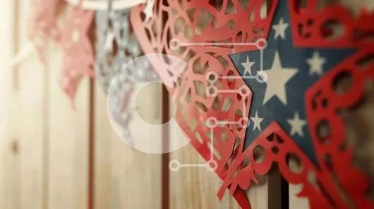 Intra Συλλεκτικό Ξύλινο Παζλ Plywood 4mm - Γιρλάντα από κόκκινο, λευκό και μπλε χαρτί Σε Ξύλινο Κουτί - Διαστάσεις Puzzle: 10x10 cm – 25 κομμάτια