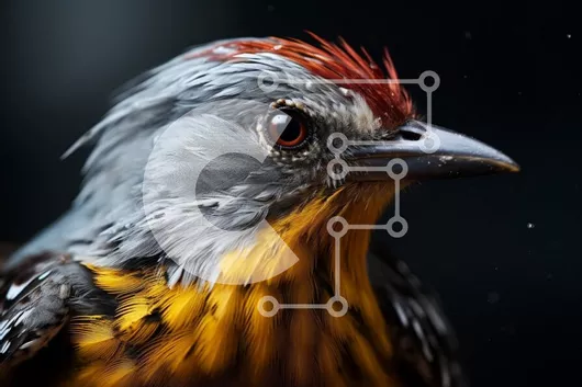 Intra Συλλεκτικό Ξύλινο Παζλ Plywood 4mm - Πολύχρωμο πουλί με κίτρινο ράμφος και κόκκινα φτερά Σε Ξύλινο Κουτί - Διαστάσεις: 10x10 cm – 25 κομμάτια