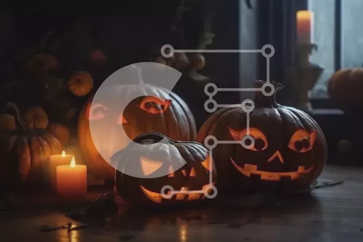 Intra Συλλεκτικό Ξύλινο Παζλ Plywood 4mm - Τρομακτικό ντεκόρ για το Halloween: Σκαλιστές κολοκύθες στο περβάζι σε δωμάτιο με χαμηλό φωτισμό Σε Ξύλινο Κουτί - Διαστάσεις: 10x10 cm – 25 κομμάτια
