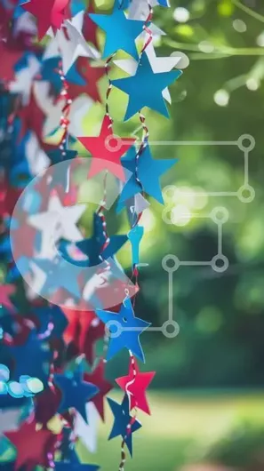 Intra Συλλεκτικό Ξύλινο Παζλ Plywood 4mm - Κόκκινα, λευκά και μπλε χάρτινα αστέρια που κρέμονται σε εξωτερικούς χώρους Σε Ξύλινο Κουτί - Διαστάσεις Puzzle: 10x10 cm – 25 κομμάτια