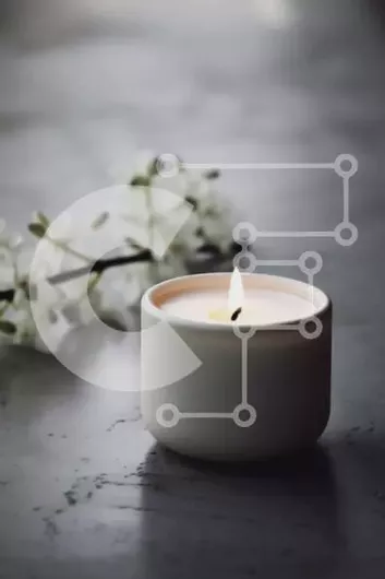 Intra Συλλεκτικό Ξύλινο Παζλ Plywood 4mm - Αναμμένο λευκό κερί δίπλα στο ανθισμένο λευκό λουλούδι στο τραπέζι Σε Ξύλινο Κουτί - Διαστάσεις Puzzle: 10x10 cm – 25 κομμάτια