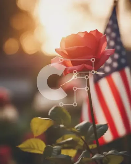 Intra Συλλεκτικό Ξύλινο Παζλ Plywood 4mm - Κόκκινο τριαντάφυλλο και αμερικανική σημαία για τον εορτασμό της 4ης Ιουλίου Σε Ξύλινο Κουτί - Διαστάσεις: 10x10 cm – 25 κομμάτια