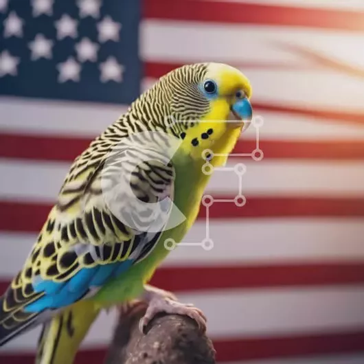 Intra Συλλεκτικό Ξύλινο Παζλ Plywood 4mm - Πράσινος και κίτρινος παπαγάλος στην αμερικανική σημαία Σε Ξύλινο Κουτί - Διαστάσεις: 10x10 cm – 25 κομμάτια