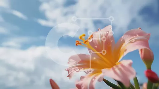 Intra Συλλεκτικό Ξύλινο Παζλ Plywood 4mm - Μονό ροζ λουλούδι με μπλε ουρανό και σύννεφα Σε Ξύλινο Κουτί - Διαστάσεις: 10x10 cm – 25 κομμάτια
