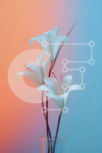 Intra Συλλεκτικό Ξύλινο Παζλ Plywood 4mm - Τρία λευκά κρίνα σε ένα διαυγές βάζο σε μπλε και πορτοκαλί φόντο Σε Ξύλινο Κουτί - Διαστάσεις: 10x10 cm – 25 κομμάτια