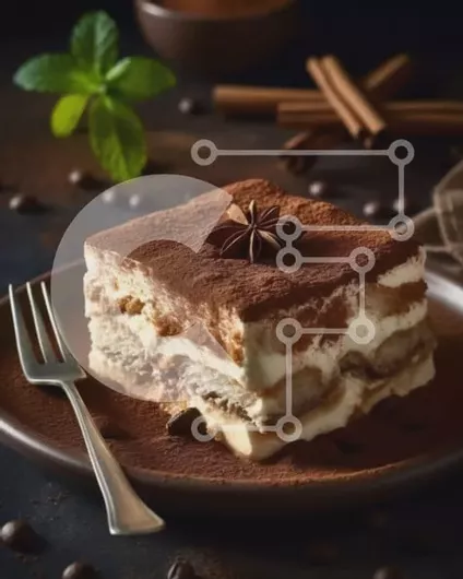 Intra Συλλεκτικό Ξύλινο Παζλ Plywood 4mm - Νόστιμη φέτα τιραμισού σε ένα πιάτο με κόκκους καφέ στο φόντο Σε Ξύλινο Κουτί - Διαστάσεις: 10x10 cm – 25 κομμάτια
