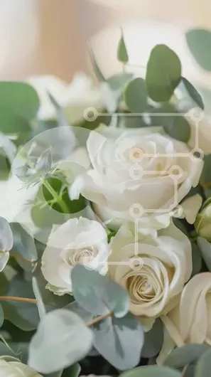 Intra Συλλεκτικό Ξύλινο Παζλ Plywood 4mm - Κομψό μπουκέτο με λευκά τριαντάφυλλα και πράσινα φύλλα Σε Ξύλινο Κουτί - Διαστάσεις Puzzle: 10x10 cm – 25 κομμάτια