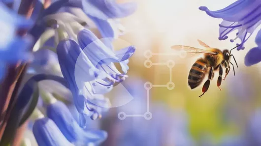 Intra Συλλεκτικό Ξύλινο Παζλ Plywood 4mm - Μέλισσα αιωρείται μπροστά από μπλε λουλούδια Σε Ξύλινο Κουτί - Διαστάσεις: 10x10 cm – 25 κομμάτια
