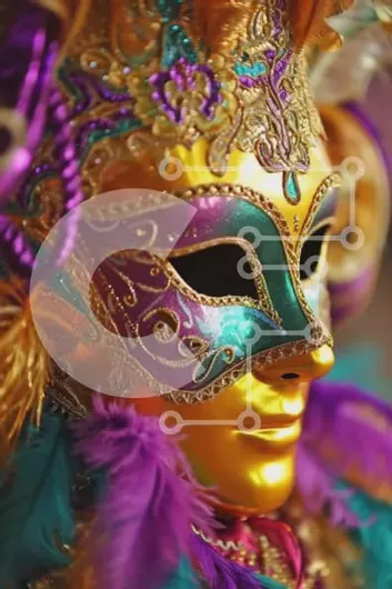 Intra Συλλεκτικό Ξύλινο Παζλ Plywood 4mm - Πολύχρωμη αποκριάτικη μάσκα με μωβ, μπλε και πράσινα φτερά Σε Ξύλινο Κουτί - Διαστάσεις Puzzle: 10x10 cm – 25 κομμάτια