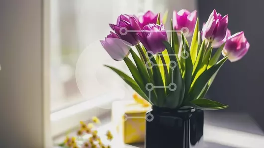 Intra Συλλεκτικό Ξύλινο Παζλ Plywood 4mm - Μωβ τουλίπες σε μαύρο βάζο με κουτί δώρου Σε Ξύλινο Κουτί - Διαστάσεις: 10x10 cm – 25 κομμάτια