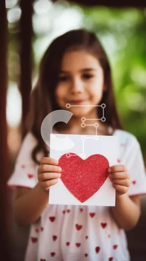 Intra Συλλεκτικό Ξύλινο Παζλ Plywood 4mm - Νεαρό κορίτσι που κρατά χαρτί κόκκινης καρδιάς σε εξωτερικούς χώρους Σε Ξύλινο Κουτί - Διαστάσεις Puzzle: 10x10 cm – 25 κομμάτια