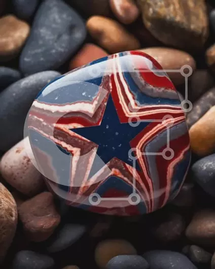 Intra Συλλεκτικό Ξύλινο Παζλ Plywood 4mm - Κόκκινος, λευκός και μπλε βράχος σε σχήμα αστεριού σε βότσαλα Σε Ξύλινο Κουτί - Διαστάσεις Puzzle: 10x10 cm – 25 κομμάτια