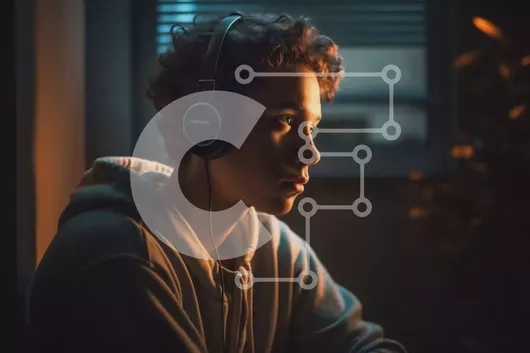 Intra Συλλεκτικό Ξύλινο Παζλ Plywood 4mm - Νεαρός άνδρας με τα ακουστικά που κοιτάζει έξω από το παράθυρο Στοκ Φωτογραφία Σε Ξύλινο Κουτί - Διαστάσεις Puzzle: 10x10 cm – 25 κομμάτια