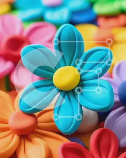 Intra Συλλεκτικό Ξύλινο Παζλ Plywood 4mm - Πολύχρωμα πλαστικά λουλούδια σε κύκλο Σε Ξύλινο Κουτί - Διαστάσεις Puzzle: 10x10 cm – 25 κομμάτια