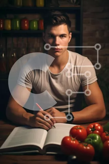 Intra Συλλεκτικό Ξύλινο Παζλ Plywood 4mm - Νεαρός άνδρας που γράφει στο ανοιχτό βιβλίο με τα λαχανικά Σε Ξύλινο Κουτί - Διαστάσεις Puzzle: 10x10 cm – 25 κομμάτια