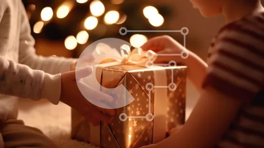 Intra Συλλεκτικό Ξύλινο Παζλ Plywood 4mm - Παιδιά που κρατούν ένα χρυσό κουτί δώρου με φώτα Σε Ξύλινο Κουτί - Διαστάσεις Puzzle: 10x10 cm – 25 κομμάτια