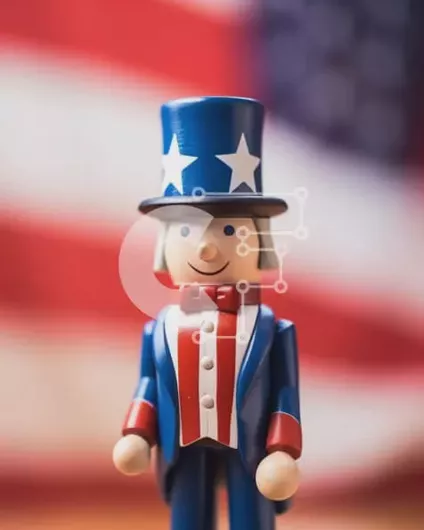 Intra Συλλεκτικό Ξύλινο Παζλ Plywood 4mm - Ειδώλιο παιχνιδιού θείου με αμερικανική σημαία Σε Ξύλινο Κουτί - Διαστάσεις: 10x10 cm – 25 κομμάτια