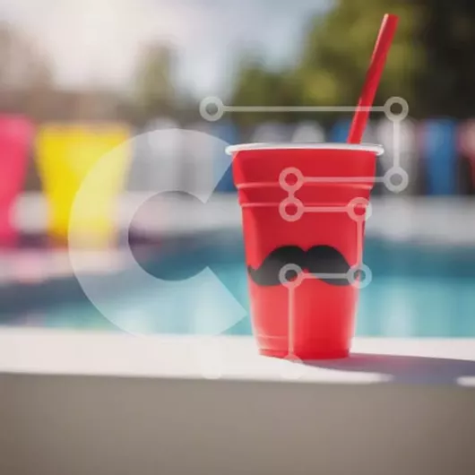 Intra Συλλεκτικό Ξύλινο Παζλ Plywood 4mm - Κόκκινο πλαστικό κύπελλο με μαύρο μουστάκι άχυρο δίπλα σε μια πισίνα Σε Ξύλινο Κουτί - Διαστάσεις Puzzle: 10x10 cm – 25 κομμάτια