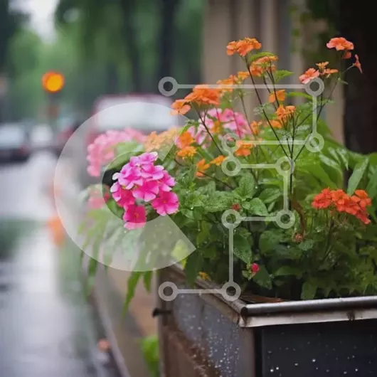 Intra Συλλεκτικό Ξύλινο Παζλ Plywood 4mm - Γωνία του δρόμου με γλάστρες και παρκαρισμένα αυτοκίνητα Σε Ξύλινο Κουτί - Διαστάσεις: 10x10 cm – 25 κομμάτια