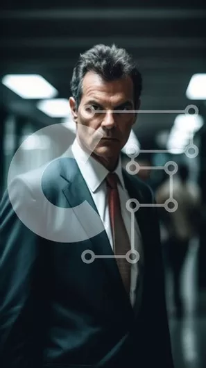 Intra Συλλεκτικό Ξύλινο Παζλ Plywood 4mm - Σοβαρός επιχειρηματίας με μαύρο κοστούμι και κόκκινη γραβάτα σε αμυδρά φωτισμένο διάδρομο Σε Ξύλινο Κουτί - Διαστάσεις Puzzle: 10x10 cm – 25 κομμάτια